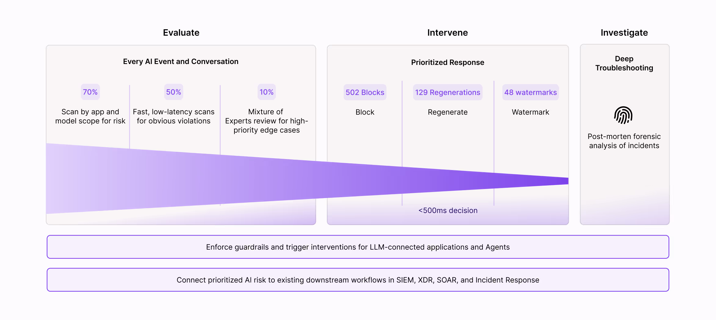 Monitor, block, and investigate AI-driven threats with real-time security controls and enterprise integration.